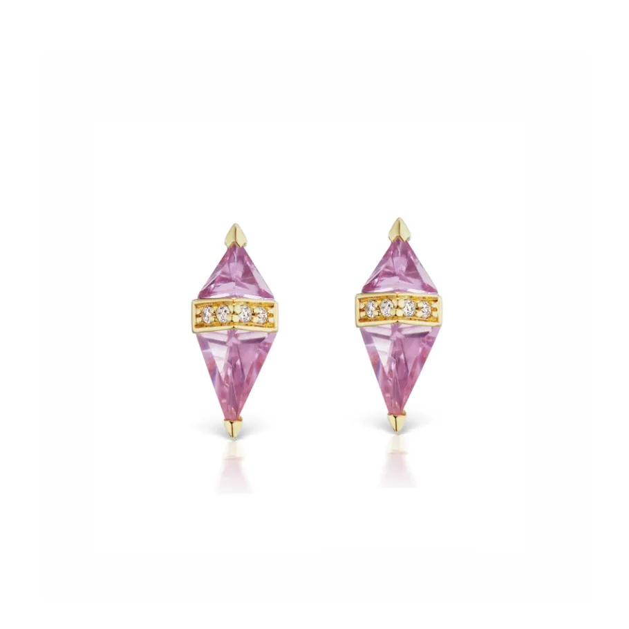 18K Yellow Gold Pietra studs featuring pink topaz and diamond.